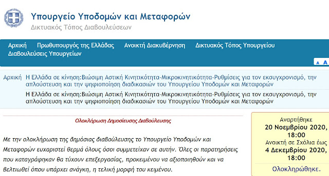 To Σχέδιο Νόμου του Υπουργείου Υποδομών και Μεταφορών 20 Νοε 2020. Μπορείτε να δείτε το σχέδιο ενιαίο εδώ σε PDF: